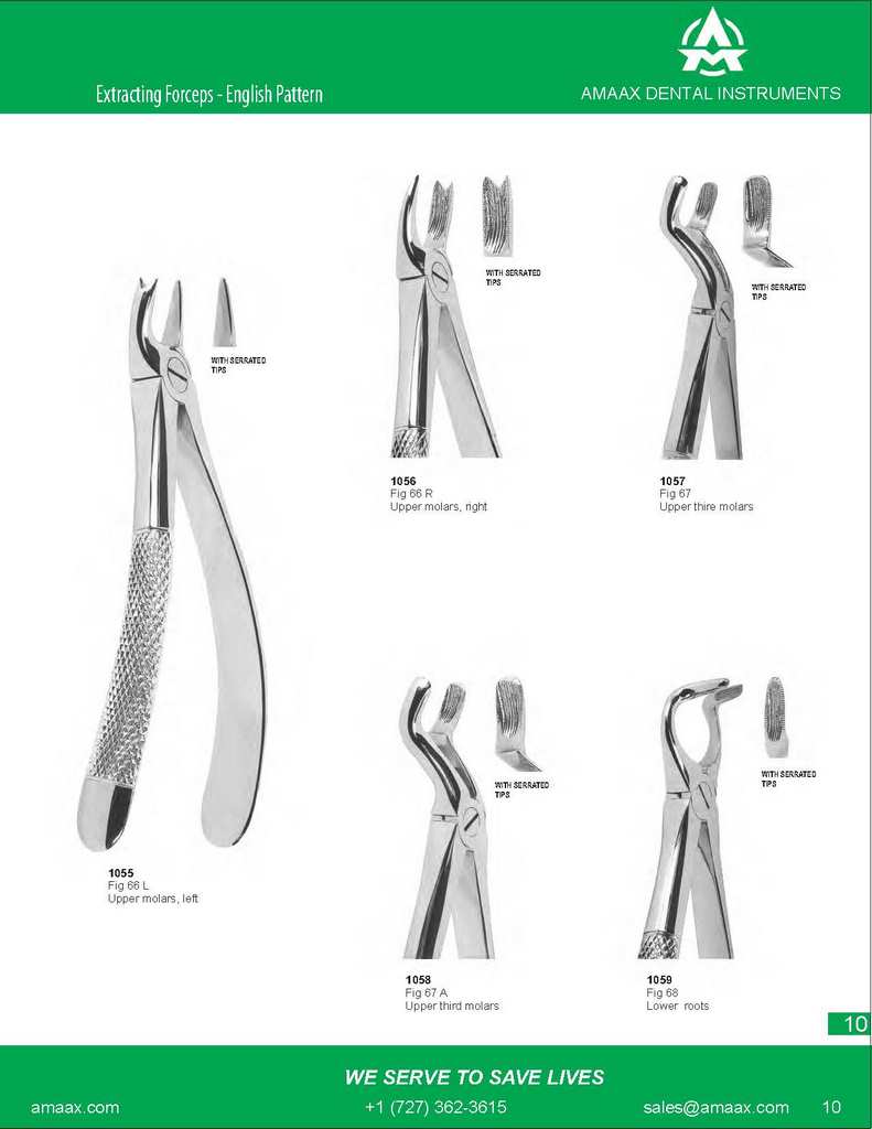 WITH SERRATED TIPS WITH SERRATED TIPS WITH SERRATED TIPS 1056 1057 Fig 66 R Fig 67 Upper molars, right Upper thire molars WITH SERRATED WITH SERRATED TIPS TIPS 1055 Fig 66 L Upper molars, left 1058 1059 Fig 67 A Fig 68 Upper third molars Lower roots