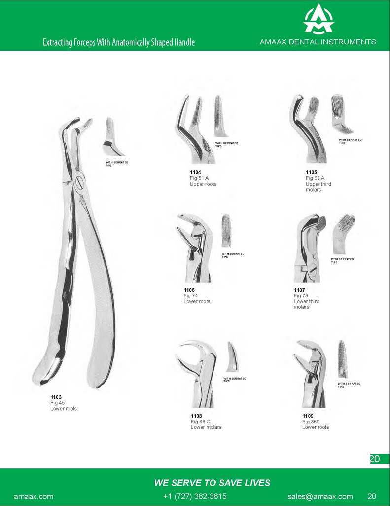 WITH SERRATED TIPS WITH SERRATED TIPS WITH SERRATED TIPS 1111 Fig 90 Upper molars, left 1112 Fig 145 Lower roots WITH SERRATED WITH SERRATED TIPS TIPS 1110 Fig 89 Upper molars, right 1113 Fig 151 ? Upper roots 1114 Fig 349 Upper roots
