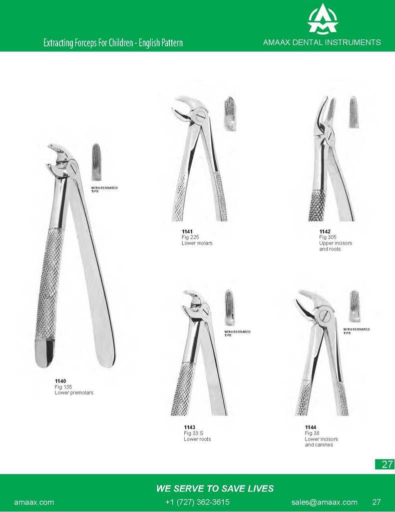 WITH SERRATED TIPS 1141 1142 Fig 225 Lower molars Fig 305 Upper incisors and roots WITH SERRATED WITH SERRATED TIPS TIPS 1140 Fig 135 Lower premolars 1143 1144 Fig 33 S Lower roots Fig 38 Lower incisors and canines