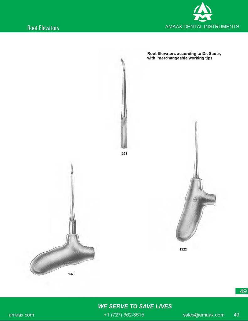 1321 Root Elevators according to Dr. Sader,with interchangeable working tips 1322 1320
