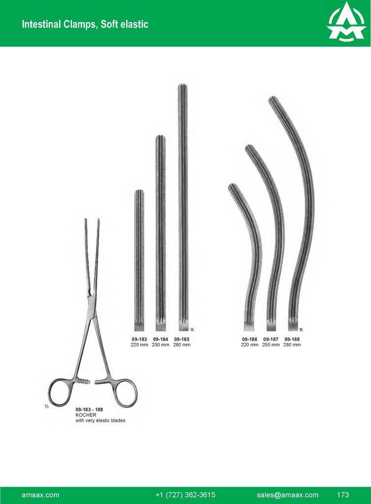 KOCHER with elastic blades 09-169 210 mm 09-170 230 mm 09-167 09-168 09-169 09-170 09-171 – 172 DOYEN with elastic blades 210 mm 09-171 09-172 INSTRUMENTS R 173