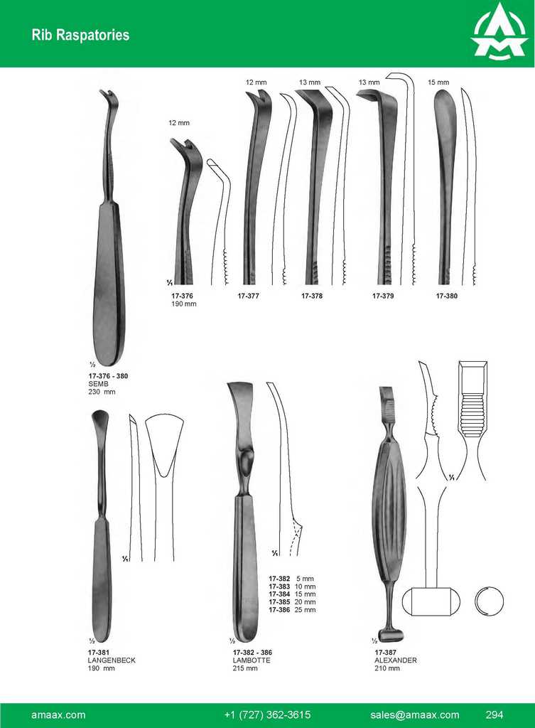 17-356 230 mm 3 17-357 COLLIN 195 mm 3 17-358 GLUCK 190 mm 3 17-359 GLUCK 190 mm 3 17-360 BRUNNER Universal Pattern 340 mm 3 17-361 GIERTZ-STILLE 250 mm 3 17-354 SCHUMACHER Sternum shears 210 mm 17-355 LEBSCHE Sternum chisel 200 mm 294