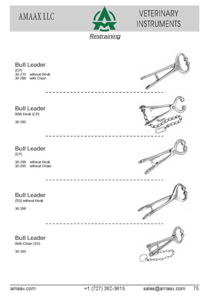 Restraining Bull Leader (CP) 30-275 without Hook 30-280 with Chain Bull Leader With Hook (CP) 30-285 Bull Leader (CP) 30-290 without Hook 30-295 without Chain Bull Leader (SS) without Hook 30-300 Bull Leader With Chain (SS) 30-305