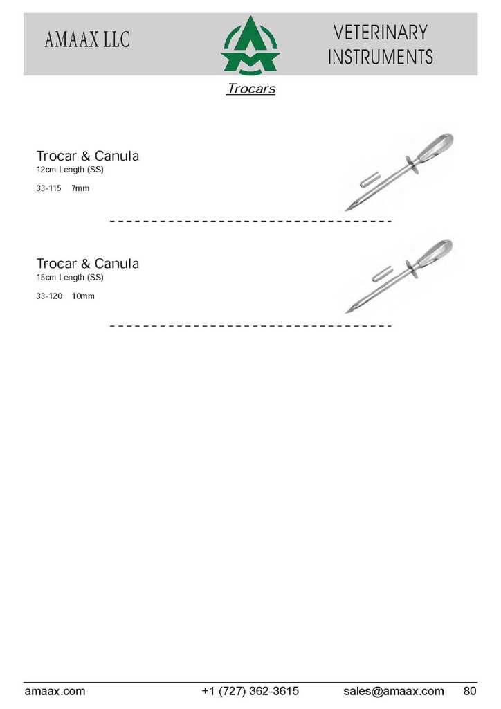 Trocars Trocar & Canula 12cm Length (SS) 33-115 7mm Trocar & Canula 15cm Length (SS) 33-120 10mm