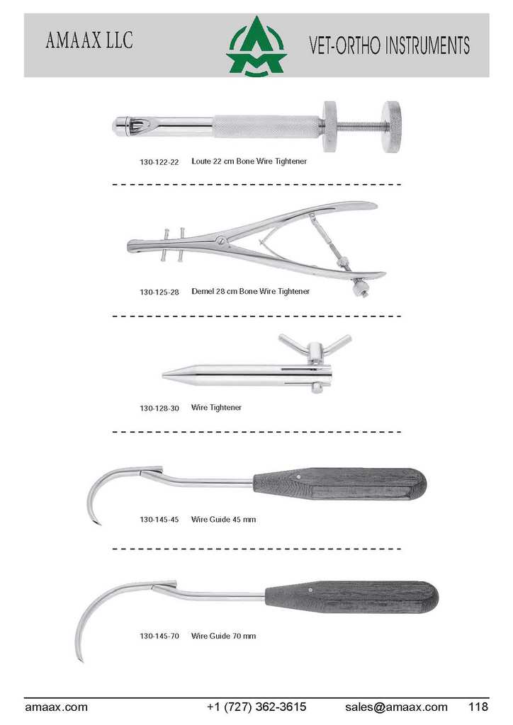130-122-22 Loute 22 cm Bone Wire Tightener 130-128-30 Wire Tightener 130-145-45 Wire Guide 45 mm 130-145-70 Wire Guide 70 mm